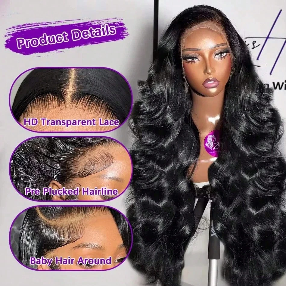 BUNGIOL⢠Body Wave Swiss Lace Front Human Hair Wig 40-42 Inch Long 5x5 Closure Human Hair Pre plucked